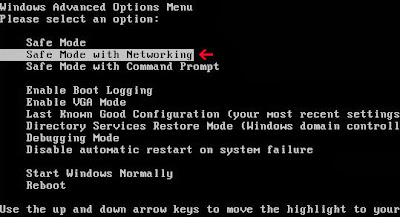 launches. Use the arrow keys to select the "Safe Mode with Networking" option, and then hit ENTER Key to continue.